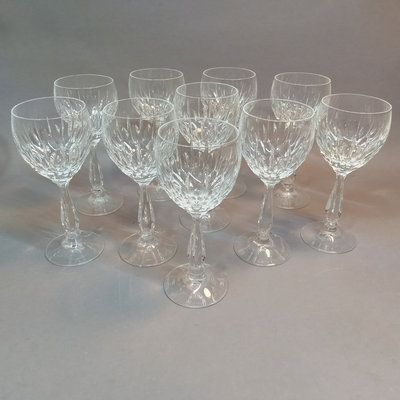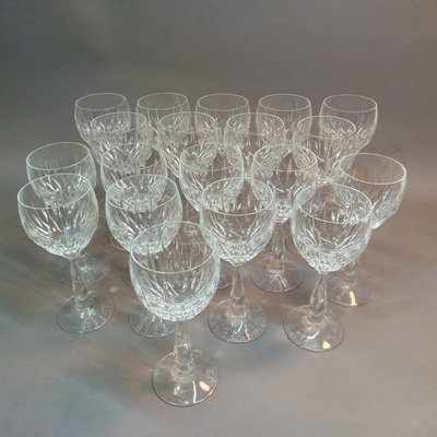 Schott-Zweisel stemware, President pattern, includes 6.5h (10) white wine and 6.75h (9) red wine glasses, purchased in Germany. 19 pieces.