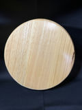 set of Japanese-style round wooden plates possibly made from solid acacia or rubber wood, often used for serving snacks, desserts, or as decorative charger plates.