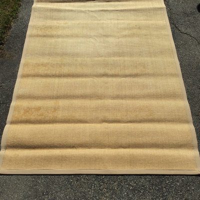 nuLoom 72x108 (6ft x 9ft) and unmarked 96x60 (8ft x 5ft) smaller. Staining present. Heavy, bring help and appropriate vehicle to pickup. 2 pieces.