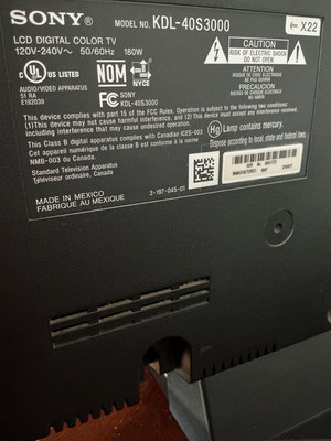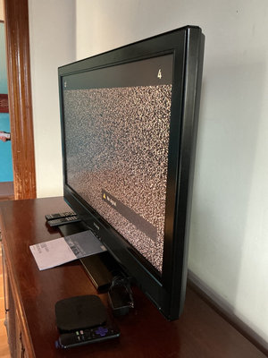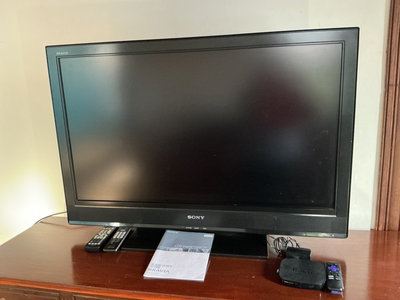 A Sony Bravia LCD TV (model KDL-40S3000) accompanied by remotes, instruction manual, and a Roku attachment.