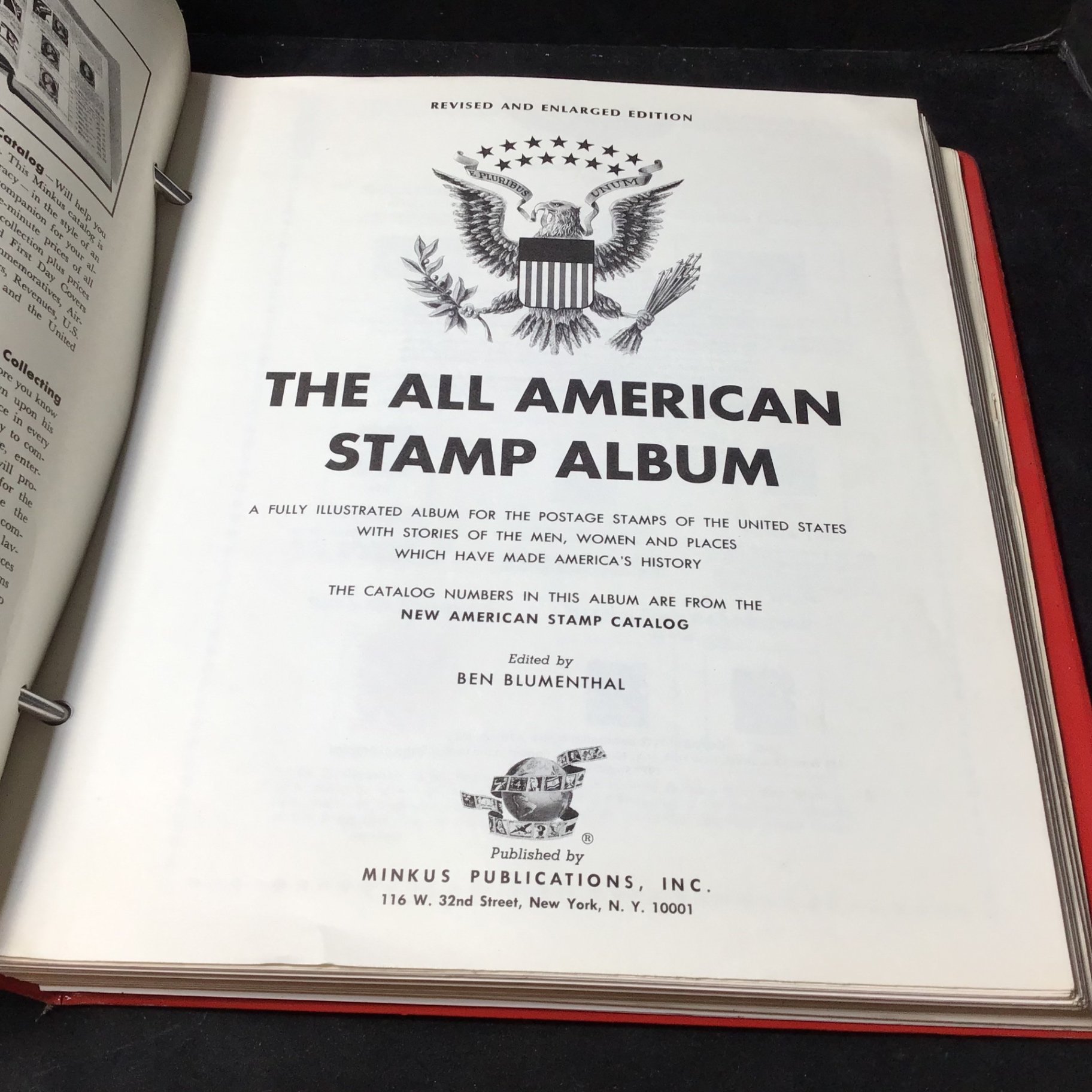 Stamp album, partially full, cracks on the plastic cover at spine. First Day covers. Uncirculated stamp sheets and individuals, as well as cancelled stamps. Small collection of foreign coins, separated by country, from the 1970s-1980s. 30 plus pieces.