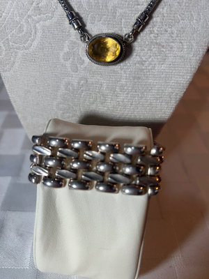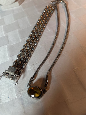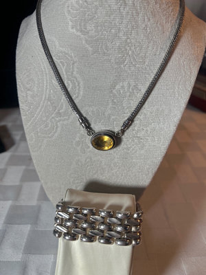16” Sterling chain necklace with gold topaz center, and a sterling panther link bracelet, 6”.