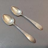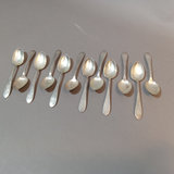 Antique Dominick & Haff (1868-1928, then absorbed into Reed & Barton) Sterling Pointed Antique pattern set/12 Demitasse Spoons, 4.25in, overall weight 109.3dwt. From Shreve, Crump, & Low. Companion pieces to Lots 444-450, 452-454. Monogram on handles. 12 pieces.