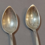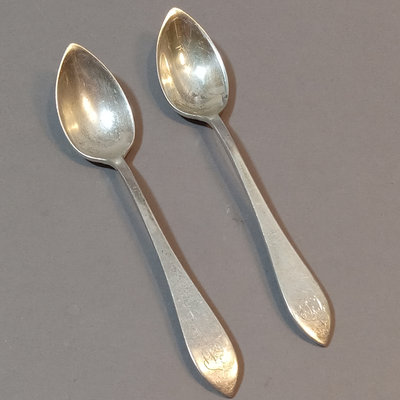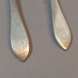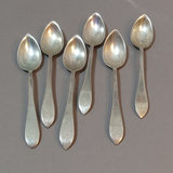 Antique Dominick & Haff (1868-1928, then absorbed into Reed & Barton) Sterling Pointed Antique pattern set/6 Fruit/Orange spoons, 5.5in, overall weight 108.4dwt. From Shreve, Crump, & Low. Companion pieces to Lots 444-449, 451-454. Monogram on handles. 6 pieces.