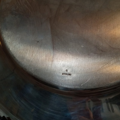 Sterling silver charger, makers mark "R", with "W" monogram in center, 11d. 429.9dwt. 1 piece.