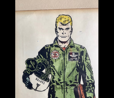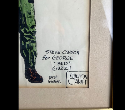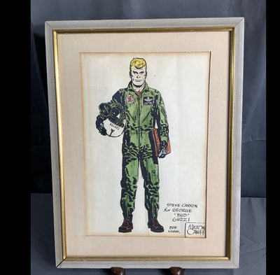 Steve Canyon original colored drawing. Framed and under glass signed by artist, Milton Caniff (American, 1907-1988). Framed 17x13. 1 piece.