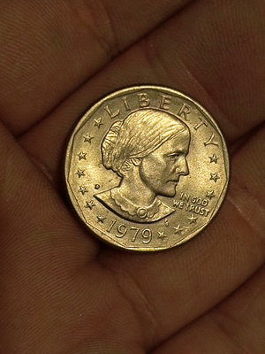 United States one-dollar coins: the first shows an eagle on the reverse with inscriptions UNITED STATES OF AMERICA and ONE DOLLAR, while the second features the obverse bust with LIBERTY and IN GOD WE TRUST and the year 1979.