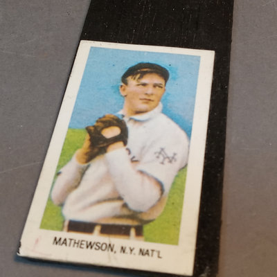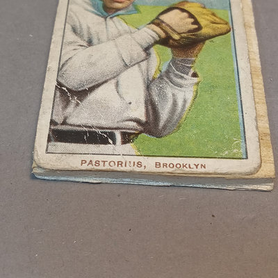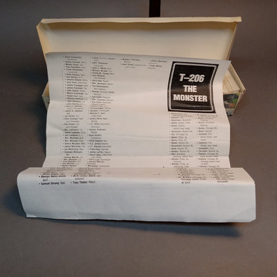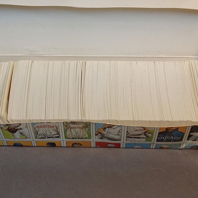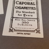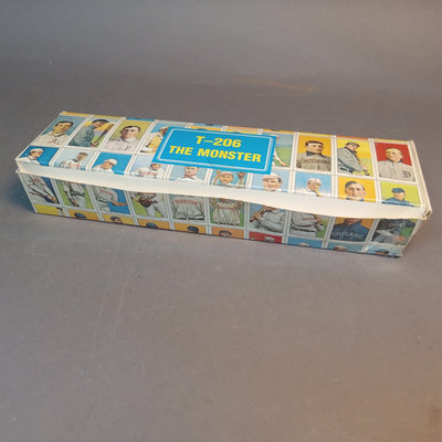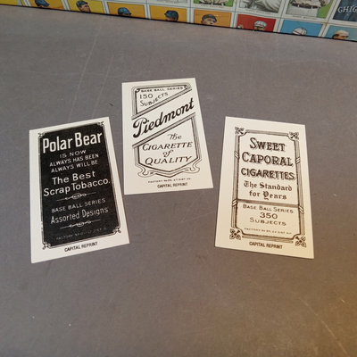 T-206 The Monster Capital Reprint Base Ball Series Cards, reprints of cards originally included in packets of cigars/cigarettes/tobacco. Uncounted box of cards. Includes Pastorius with rounded edges that might be an original card, however it has been pasted to a piece of scrap wood, as has another reprint card. 1 box.