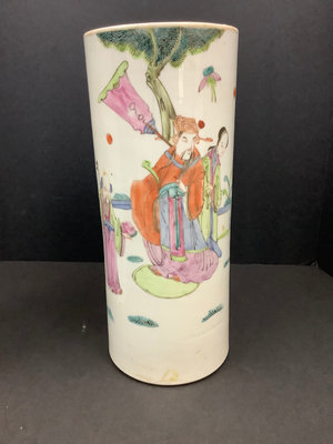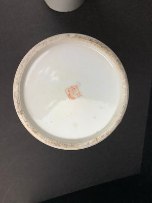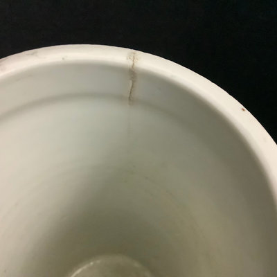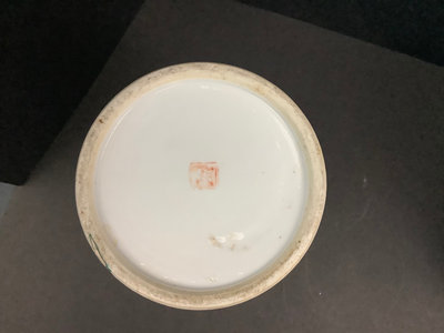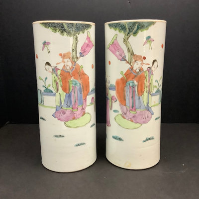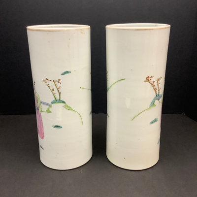 Tall porcelain vases, mirror image of one another, mark on bottom, one with small crack near the rim, 5dx11.5h. 2 pieces.