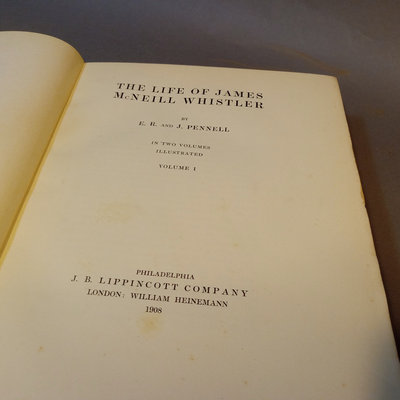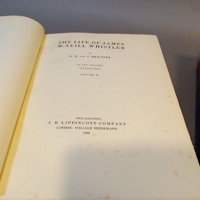 The Life of James McNeill Whistler b E.R. and J. Pennell, illustrated and in 2 vols, J.B. Lippincott Company, 1908. Some foxing on pages. 2 pieces.