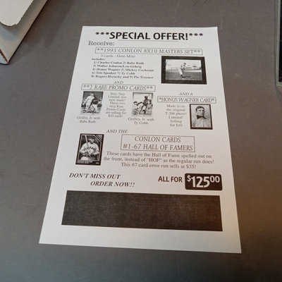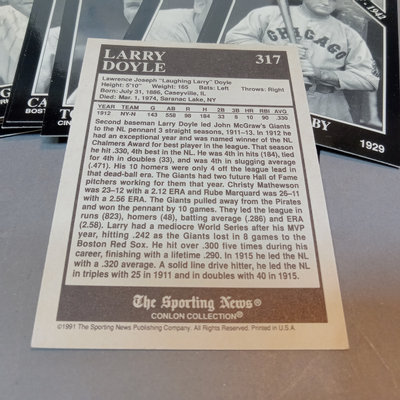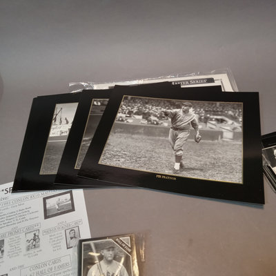 The Sporting News Company Collectors Baseball Set, includes Ken Griffey Jr. promo cards, Horus Wagner card, 1993 Conlon 8x10 Masters Set, and Conlon Cards Hall of Famers set plus extras. 1 box.