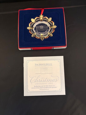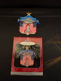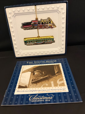 White House Historical Association Christmas Ornaments 2000: The White House, 200th Anniversary Ornament 1800-2000. 2002: Crystal Chandeliers 2004: R.B Hayes , Sleigh in Winter 2014: Harding, Locomotives 2017 : FDR , American Bald Eagle Hallmark Keepsake Ornament, National Salute to the Armed Forces