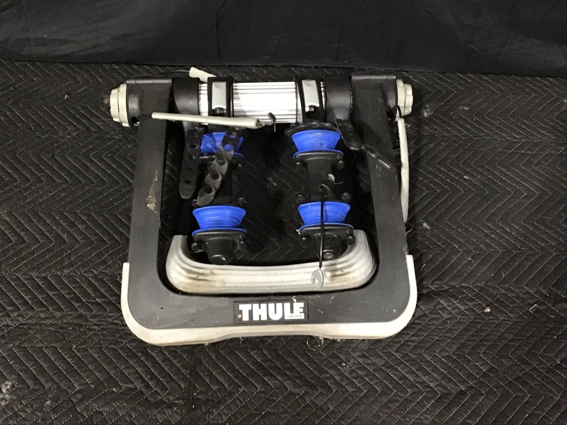Includes Integrated lock and keys. Check thule.com for proper fit to your car. Shows wear but still ready for service. 1 piece.