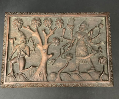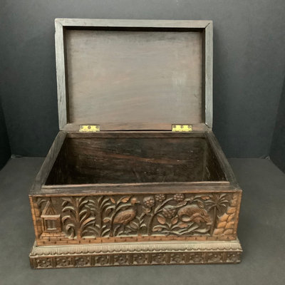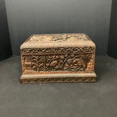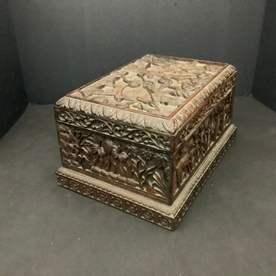 Large hinged carved wood box, 12.5x9x7. 1 piece.