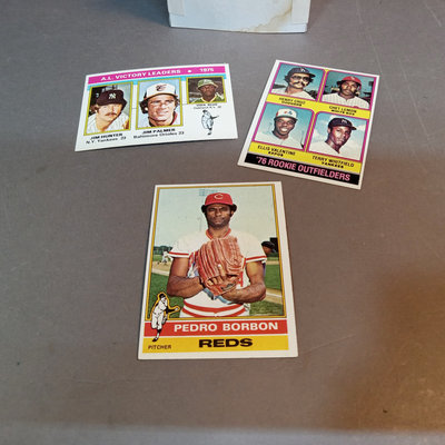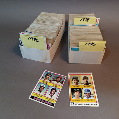Topps Baseball trading cards from 1976 and 1978 in two boxes. Uncounted/unsorted, may not include entire series, but will contain duplicates. Condition varies, from bent corners to like-new on visible examination. 2 boxes.