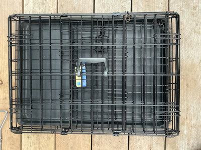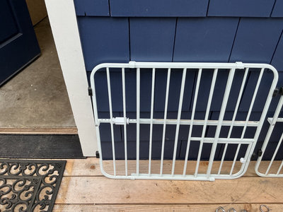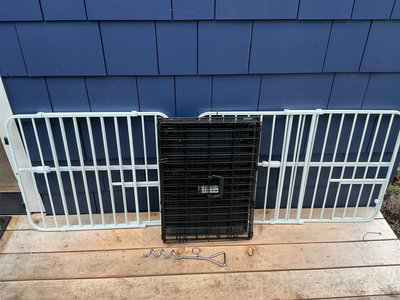 White expandable pet gates, pet crate.