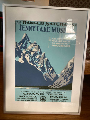 Two professionally framed vintage travel posters. Jenny Lake at Grand Teton National Park (18x24”) See America by the US Travel Bureau (22x26”)