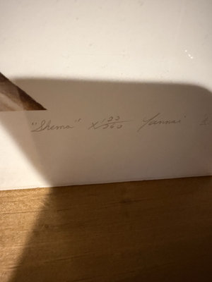 A pair of Yannai Judia prints One features layered shapes in red and pink hues; the other shows interlocking prisms in a multicolored palette with blue background accents. Measures 19x24