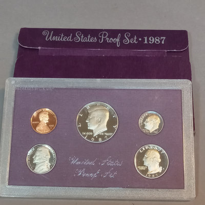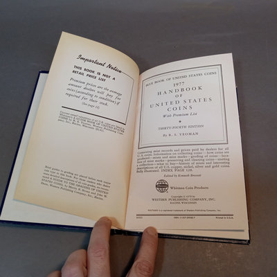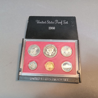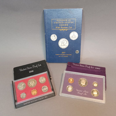 1980 and 1987 United States Proof Sets, encased. 1977 Handbook of U.S. Coins. 3 pieces.