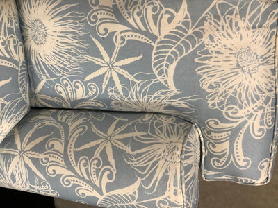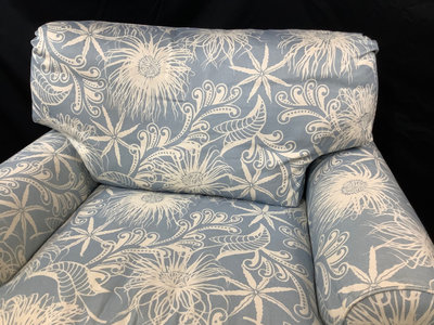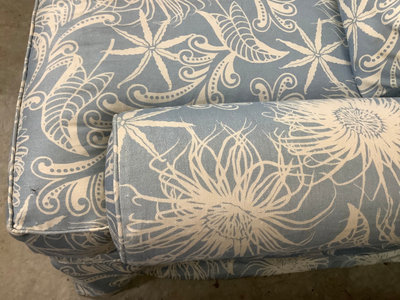 Blue and white design cover. 40x40x36. Heavy, bring help and appropriate vehicle to pickup. 1 piece.