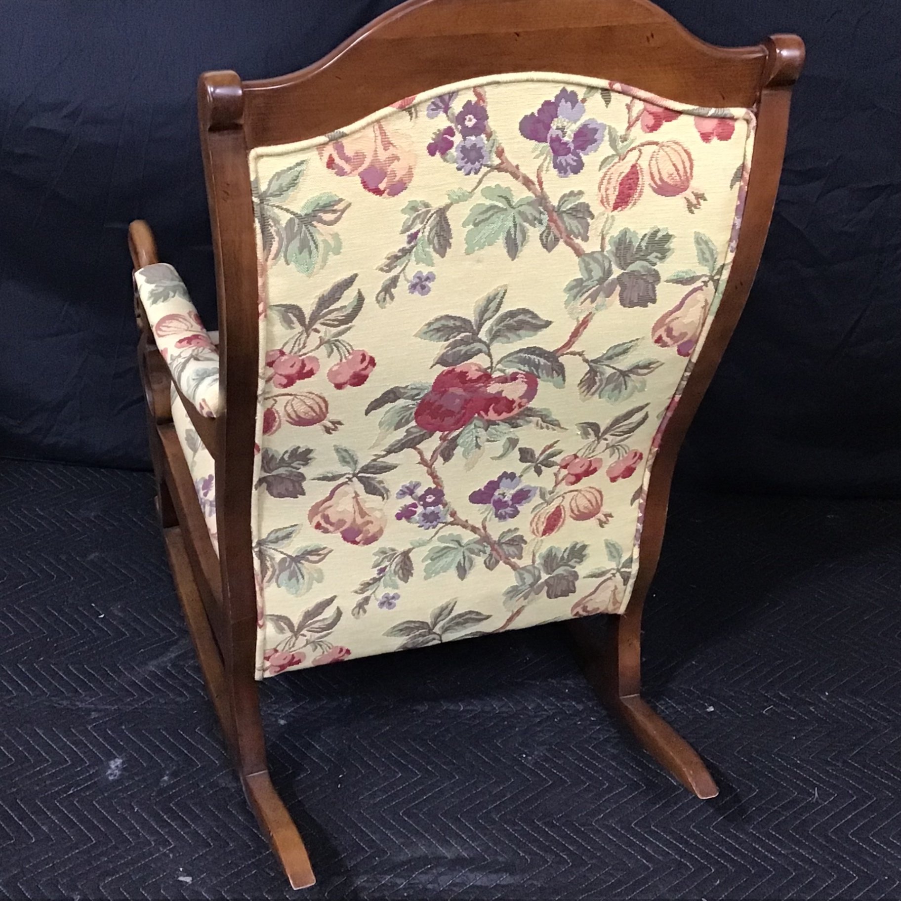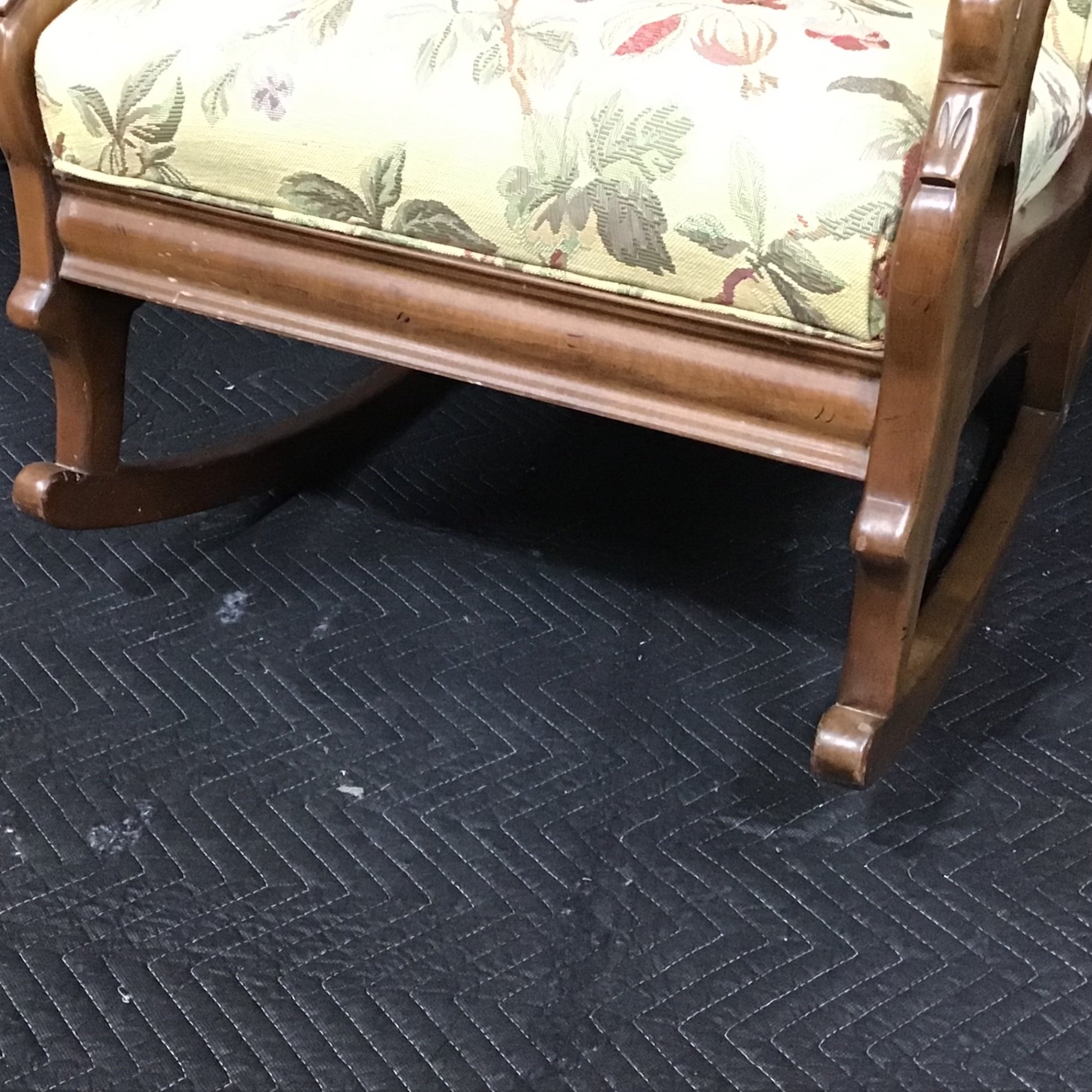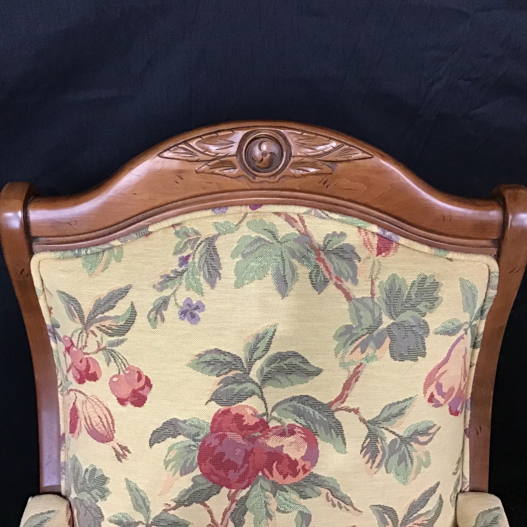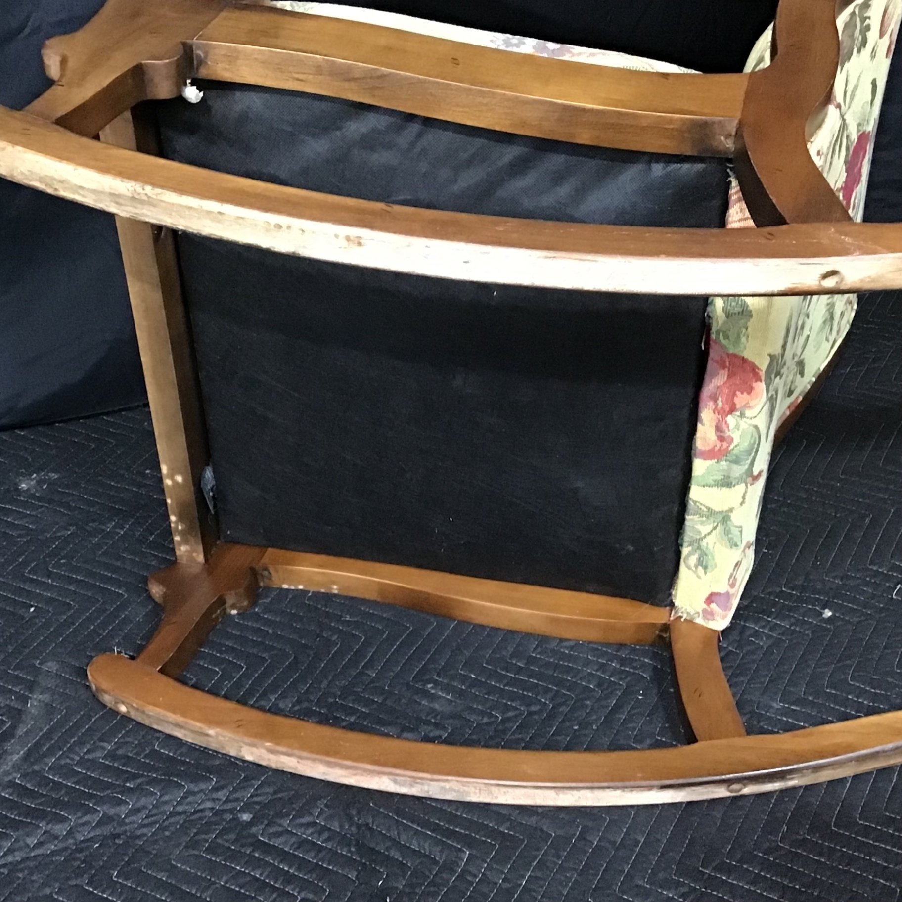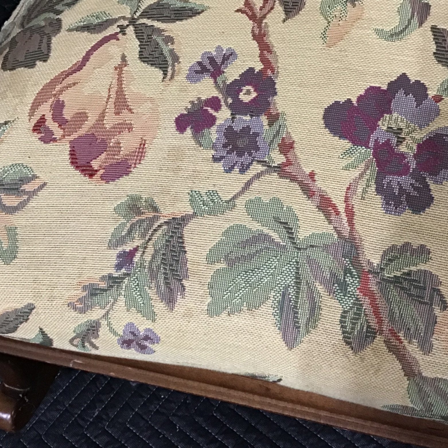 Newer upholstery, wood frame with swan arms. 24x35x42, 18h seat. Heavy, bring help and appropriate vehicle to pickup. 1 piece.