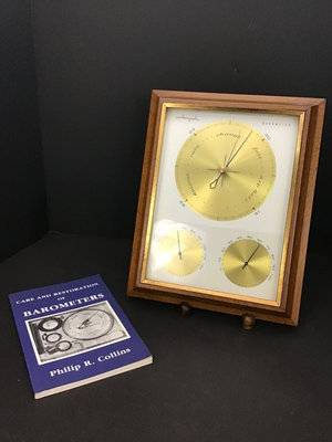 Vintage Airguide framed barometer, untested, 13.5x11x2. Care and Restoration of Barometers by Philip R. Collins, copyright 1990. 2 pieces.