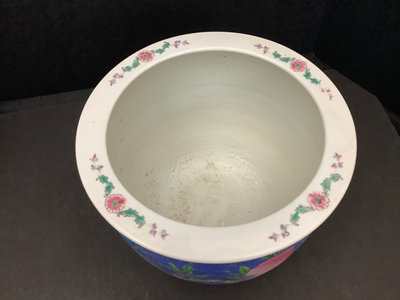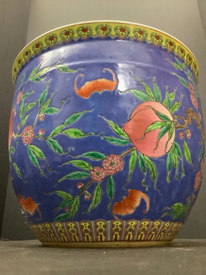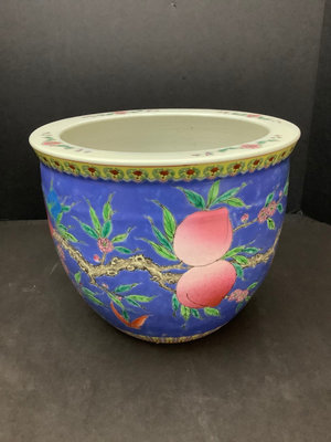 Asian goldfish bowl/planter with peach motif, no makers mark, 10.75dx8.5h. 1 piece.