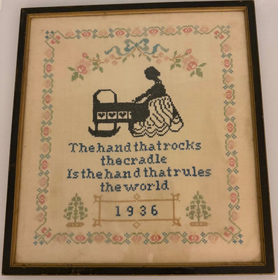 A tribute to mom’s everywhere ! “The hand that rocks the cradle is the hand that rules the world. A the famous refrain from a poem written by the American poet William Ross Wallace (1819-1881). 14.25” tall, 13” wide.