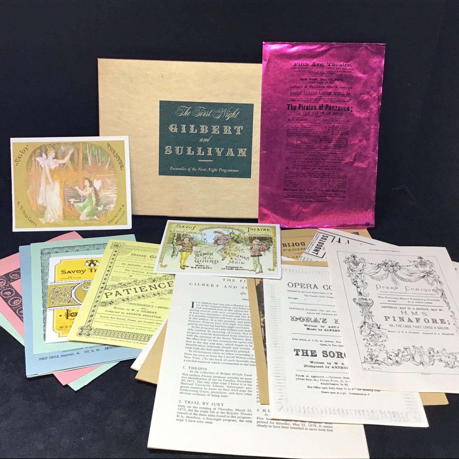 Collection of Dinner / Theatre ephemera, includes Gilbert & Sullivan first night reproductions in a box, Show paybills and programmes, and Menus, circa 1930s to 1950s. 19 pieces.