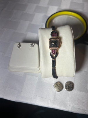 This is a very delicate old watch, made by Gruen, rose gold base. Comes with the original parts which were replaced. Alongside is a very delicate diamond posts.