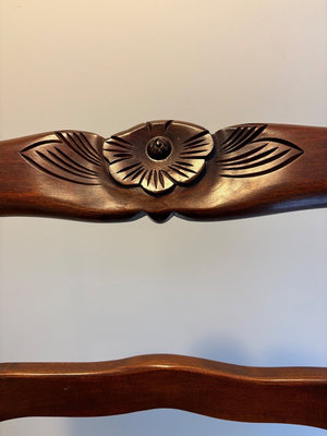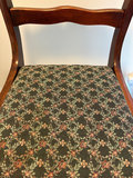 2 mahogany dining or accent chairs with pretty needlepoint design upholstery .31.5” tall to top , 17” to seat, 17” width of seat, 17” depth of chair including wood.