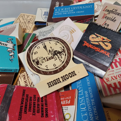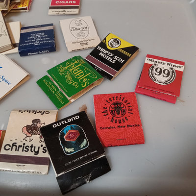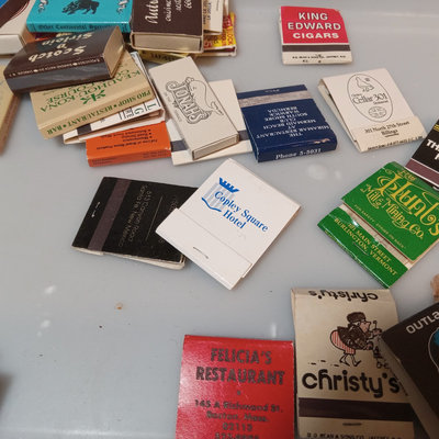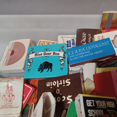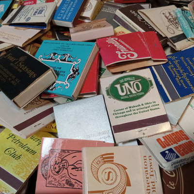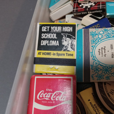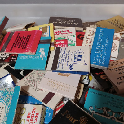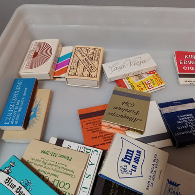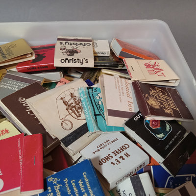 Collection of vintage match books, includes Phillies, Coca-cola, Dragonslayer, Ice House Restaurant, and many more. Tray not included. 100 plus pieces.