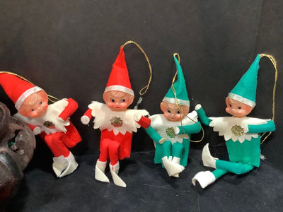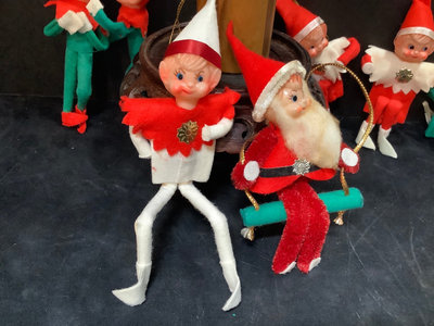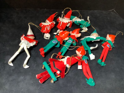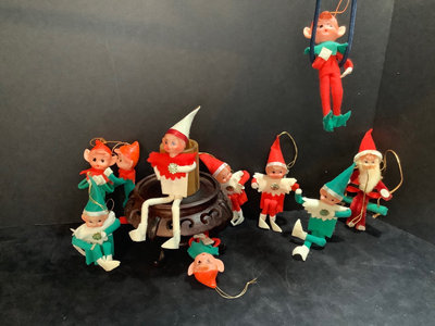 Vintage Elf on the Shelf Christmas ornaments, made in Japan, 5h. 10 pieces.