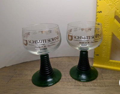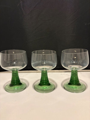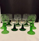 Green stem Roemer wine glasses and vintage green goblets . Schmitt Sohne, made in Germany.