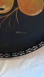 Large mid-century hand painted toleware metal tray with handles , 17” diameter.