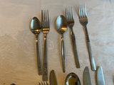 Two almost Complete services for 8 with serving pieces. Lots of random flatware, sometimes a few pieces of one pattern, including Pflatzgraff, a Japanese pattern that’s pretty cool, and an almost complete service for 8 in the pattern Elegance by Salem. Missing one dinner fork, 1 spoon, 4 butter knives and 3 tablespoons.