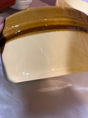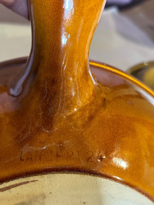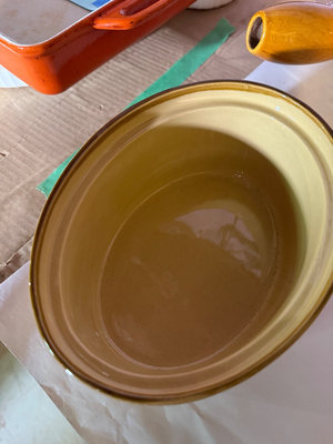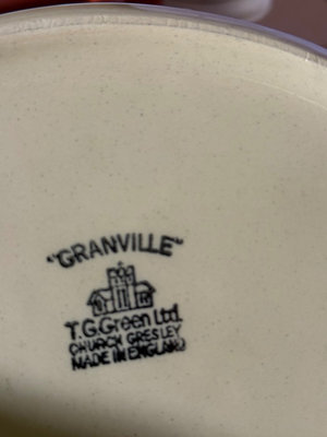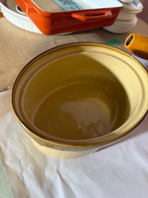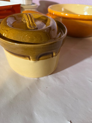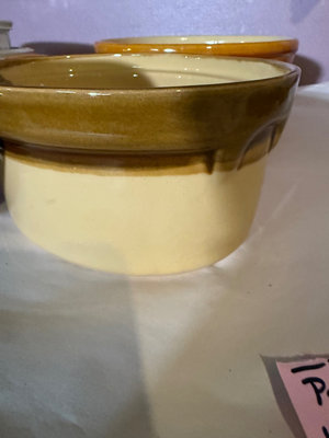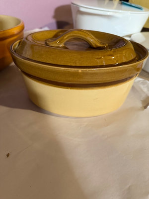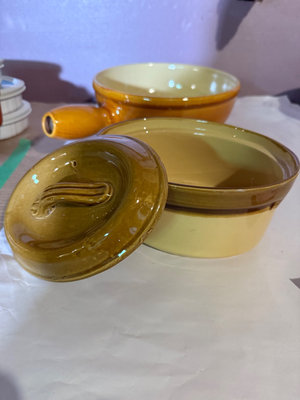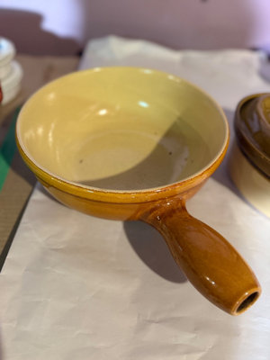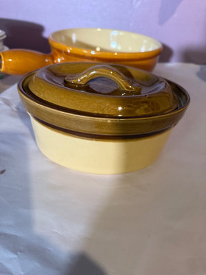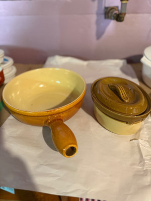 1 Vintage Landert 24 fondue stoneware pot (10" x 3.5"). 1 Vintage TG Green Ltd Church Gresley "Granville" covered casserole Made in England. **BRING OWN PACKING MATERIALS, as is as found