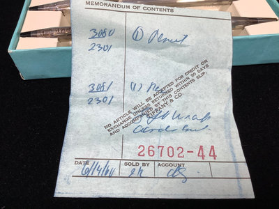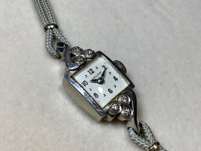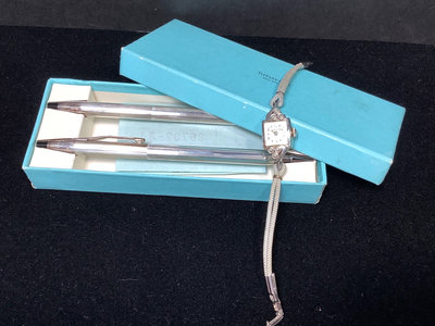 Cross Century Tiffany sterling pen & mechanical pencil set, in original box, purchased in 1960. Hamilton ladies watch, stamped 10k Gold - Biggs on the case back, with monogram, 10k GF (gold filled) on the clasp. Clear stones on face beep with the Diamond Selector II. 2 pieces.