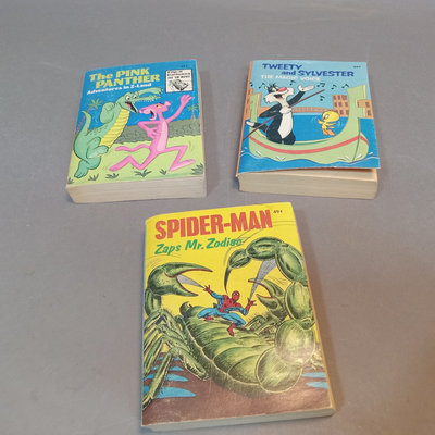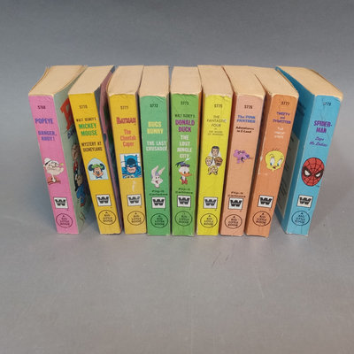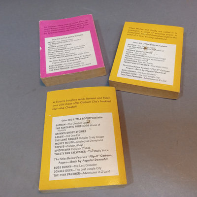 Whitman Little Big Books Flip-It Cartoons with soft covers, plus Aquaman and Major Matt Mason with hard covers, Whitman Publishing Division, Western Publishing Co., Racine WA, 1969-1976. Aquaman missing front and title pages, all others intact. Used/read condition. 11 pieces.