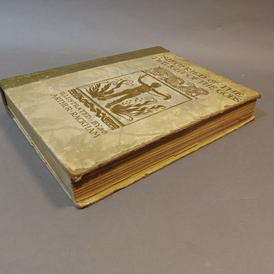 The Ring of the Niblung, by Richard Wagner, trilogy in two volumes, illustrated by Arthur Rackham. Vol. 1, The Rhinegold & The Valkyrie, Doubleday, Page & Co., 1910, book boards loose on spine, large quarto. Vols 2/3, Siegfried & The Twilight of the Gods, Doubleday, Page, & Co., 1911, wear on the book boards/cover, large quarto. 2 pieces.