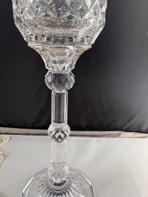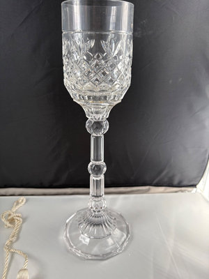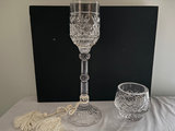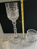 Tall goblet or votive holder in “Castletown” pattern. 12” tall. “Lismore “ open footed sugar bowl. 3.5”