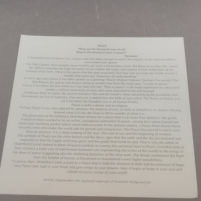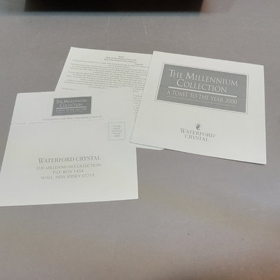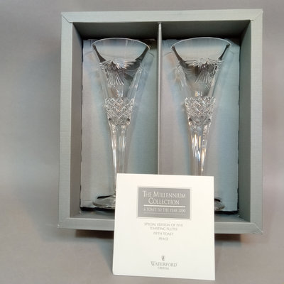 Waterford Crystal, The Millennium Collection: A Toast to the Year 2000, toasting flutes with the "Peace" pattern, produced in Germany, with original box and papers, 9.25h. 1 piece.