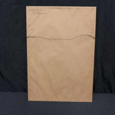 Watercolor, hand written block on back states Yasumoto, Hakushu, Kitemaker from Shimonoseki. 19.5x13.5 framed. 1 piece.