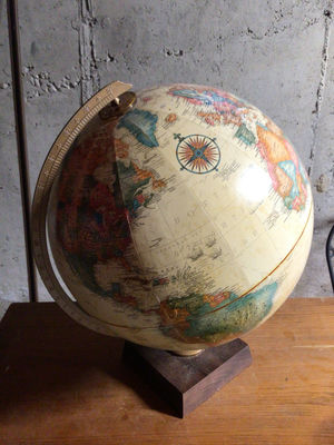 Globe on wooden stand with meridian ring