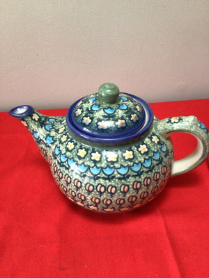 Hand-painted ceramic teapot and clear glass teapots with lids