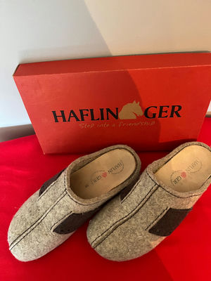 Pair of Haflinger gray felt slippers size 38