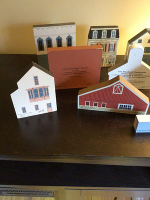 Set of wooden miniature town buildings
